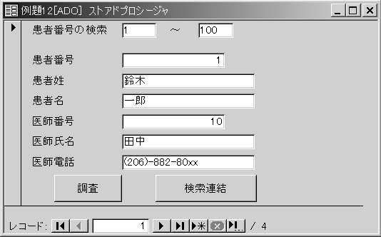 ' レコード検索を行うストアドプロシージャをレコードセットとする