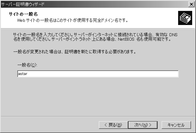 サーバー証明書 の要求の作成 【Webサーバー側の作業】 |
